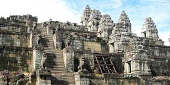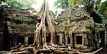 The temple of Ta Prohm rates with Angkor Wat and the Bayon as one of the most popular attractions of Angkor . Ta Prohm is a unique other-world experience. The temple is cloaked in dappled shadow, its crumbling towers and walls locked in the slow muscular embrace of vast root systems. If Angkor Wat , the Bayon and other temples are testimony to the genius of the Angkor-period Khmers, Ta Prohm reminds us equally of the awesome fecundity and power of the jungle. Built in approximately 1186, Ta Prohm was a Buddhist temple dedicated to the mother of jayavarman VII. Ta Prohm is a temple of towers, close courtyards and narrow corridors. Many of the corridors are impassable, clogged with jumbled piles of delicately carved stone blocks dislodged by the roots of long-decayed trees. PHNOM BA KHENG :