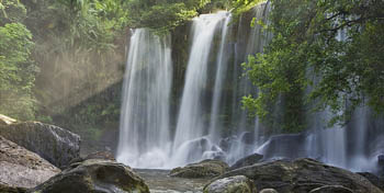 Around 400m south of Angkor Thom, the main attraction of Phnom Bakheng is the sunset view of Angkor Wat. Still, the sunset over the Tonle Sap lake is very impressive from the hill. It is also now possible to arrange an elephant ride up the hill and the location certainly makes for one of the more memorable journeys you will make. Phnom Bakheng is also home to the first of the temple mountains built in the near vicinity of Angkor . Yasovarman I (rule 889 - 910) chose Phnom Bakheng over the Rolous area , where previous temples have been built. Phnom Bakheng is a five-tiered temple mountain with seven levels. All of these numbers are of symbolic significance. The seven levels, for example, represent the seven Hindu heavens, while the total number of towers, excluding the Central Sanctuary, is 108, a particularly auspicious number and one which co-relates to the lunar calenda PHNOM KULEN :