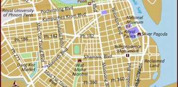 A minor hurdle to orientation in Phnom Penh is the frequency with street names and numbers get changed. The current denominations which date back to 1993, seem to have settled in, but there is still a chance again .The major boulevards of Phnom Penh run north-south, parallel to the banks of the Tele Sap and Bassac rivers. Monivong Blvd cuts north - south through the center of town, passing just west of the Psar Thmei (New Market). SILVER PAGODA :