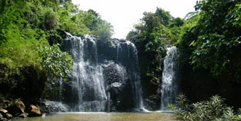 Kachang Waterfall is situated 6km north - west of Banlung. This Waterfall is located in the Kontung stream and flows into the Sre Pok River. The height of it is 12m and the water flows and falls throughout the year. A beautiful or magnificent landscape and huge amounts of fresh mist surround the waterfall. The visitors can take a bath and sit to look at the waterfall and other natural scenic beauties. OU'SENSRANOH & OU' SEAN LAIR WATERFALL :