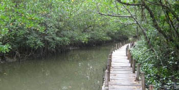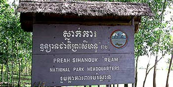 Officially called Preah Sihanouk National Park, the park has become know as <<Ream>> because it is located in the Ream commune. The park was established 1993, inaugurated in March 1995, and encompasses 21,000 hectares of coastal area including sandy beaches, mangrove forests, the Prek Tuk Sap estuary, offshore coral reefs and two islands( Koh Tmei and Koh Seh). Macaques, sun bear, dolphins, over 155 species of birds, and other animals may be seen by visitors. The park also contains rarely glimpsed species such as mouse deer and pangolin, and there have long been rumors of the tiger, but no confirmed sightings. Park facilities are not fully developed so it is best to arrange a guided tour such as a jungle walk or a boat trip. Ream Beach located in Ream National Park, thought not untouristed , the Ream Beach see far fewer visitors than Sihanoukville beach. The beach to the right is long and narrow and frequented more by fishermen than tourists. Behind the beach is a mangrove swamp, which attracts a wide variety of the tropical birds. The beaches to the left nearer the Naval Base now have a few vendors selling drinks and renting tubes.now have a few vendors selling drinks and renting tubes. |